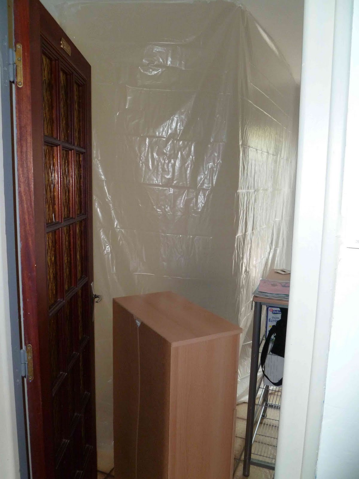 Là encore, je n'ai fait que "superviser" les opérations de loin et juste mis une bâche (oui j'ai des actions dans les bâches) sur les meubles et vêtements que j'avais sorti du placard.